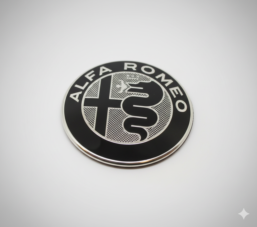 Sichern Sie sich das sportliche GTA-Emblem in elegantem Schwarz/Chrom für die Front Ihres Alfa Romeo Giulia oder Stelvio.